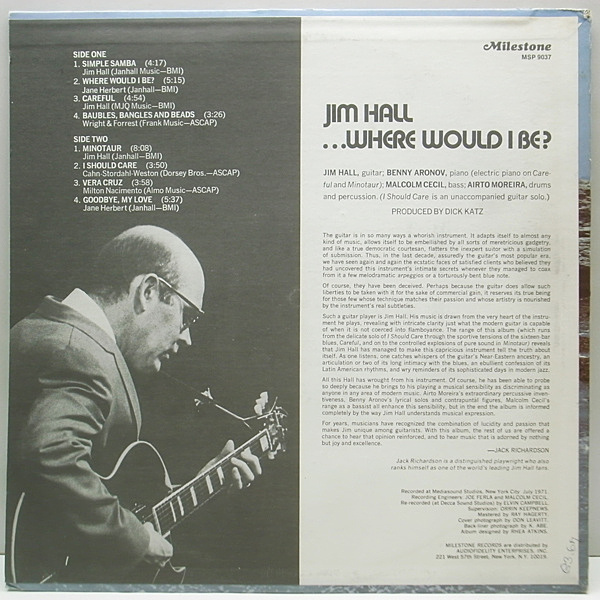 美しいタイトルナンバー "WHERE WOULD I BE?" 白熱のインタープレイが堪能できる名セッション "MINOTAUR"、AIRTO MOREIRAが参加した "VERA CRUZ" の好アレンジ等を収録した'72年作品。JIM HALL(g) BENNY ARONOV(p) MALCOLM CECIL(b) AIRTO MOREIRA(ds/per)