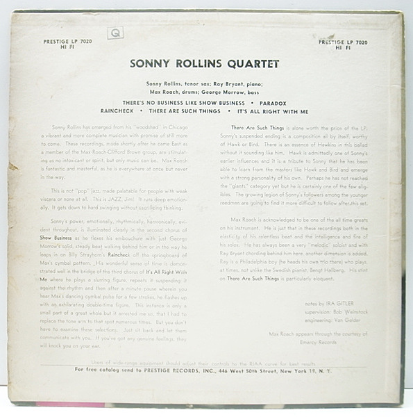 SONNY ROLLINS(ts) RAY BRYANT(p) GEORGE MORROW(b) MAX ROACH(ds)