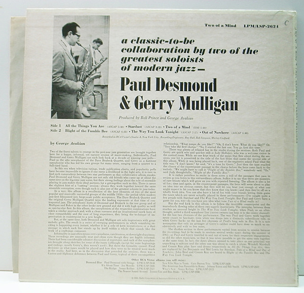 Paul Desmond(as) Gerry Mulligan(bs) Joe Benjamin, Wendell Marshall(b) Connie Kay, Mel Lewis(ds)