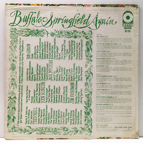 ニール・ヤング、スティーブン・スティルス、リッチー・フューレイ、ブルース・パーマー、デューイ・マーチンらを擁する『バッファロー・スプリングフィールド』彼らの最高傑作ともいわれる'67年発表の2nd.アルバム。