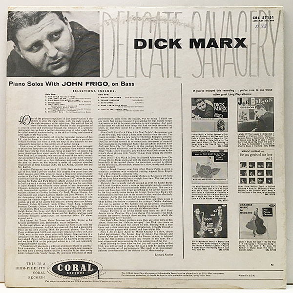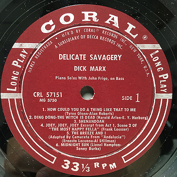 Dick Marx(p) John Frigo(b) Cy Salzberg, Norm Jeffries(ds)/Liner Notes : Leonard Feather