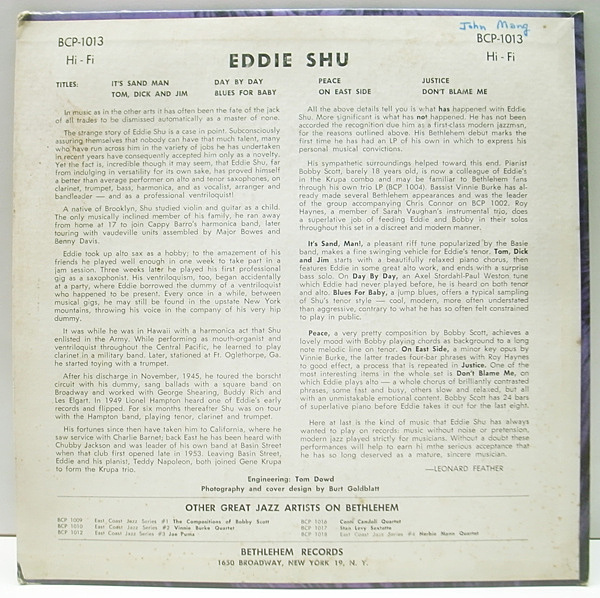 EDDIE SHU(sax) BOBBY SCOTT(p) VINNIE BURKE(b) ROY HAYES(ds)
