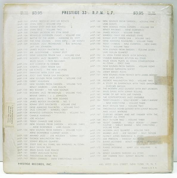 PRESTIGE/レーベルの記念すべき10"LP第一弾。