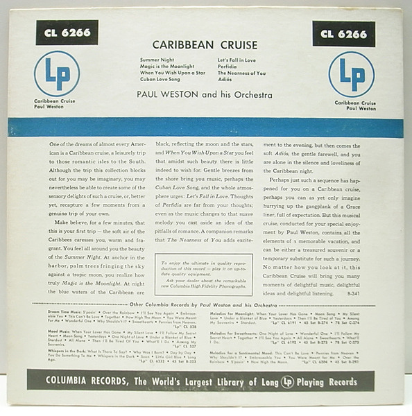 ピアニスト/指揮/作編曲/他、多才なポール・ウェストン率いるオーケストラによる初期の10"LP。