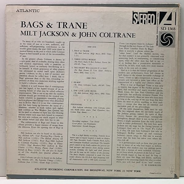 世紀の名盤『Kind Of Blue』に参加する約2ヶ月前である当時若手のコルトレーンと、MJQの看板ミルト・ジャクソンとの共演盤です。