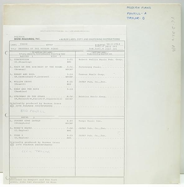 A面はバド・パウエル(Recorded in New York City April 25, 1955)、B面はセシル・テイラー(Recorded at Newport Jazz Festival July 6, 1957)によるピアニストそれぞれのコンボ演奏が収録。