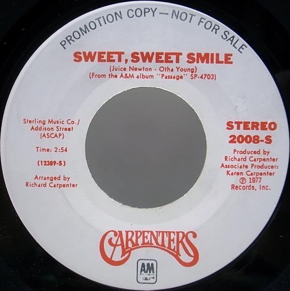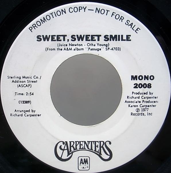 レア プロモ 7オンリー MONO オリジナル CARPENTERS Sweet, Sweet Smile ('77 A&M) モノラル 45RPM.