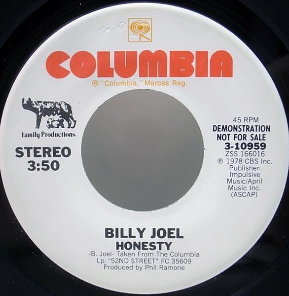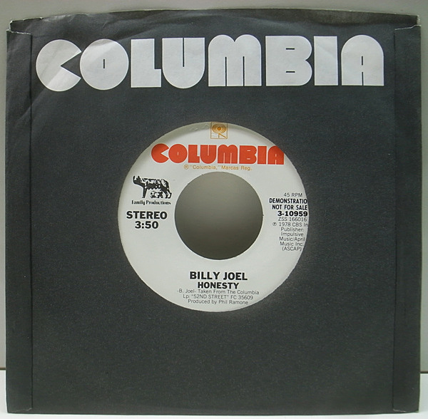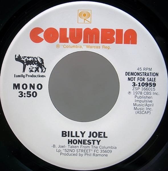 レア!! 7 プロモオンリー MONO仕様 USオリジナル BILLY JOEL Honesty ('78 Columbia) WHITE PROMO モノラル 45RPM.
