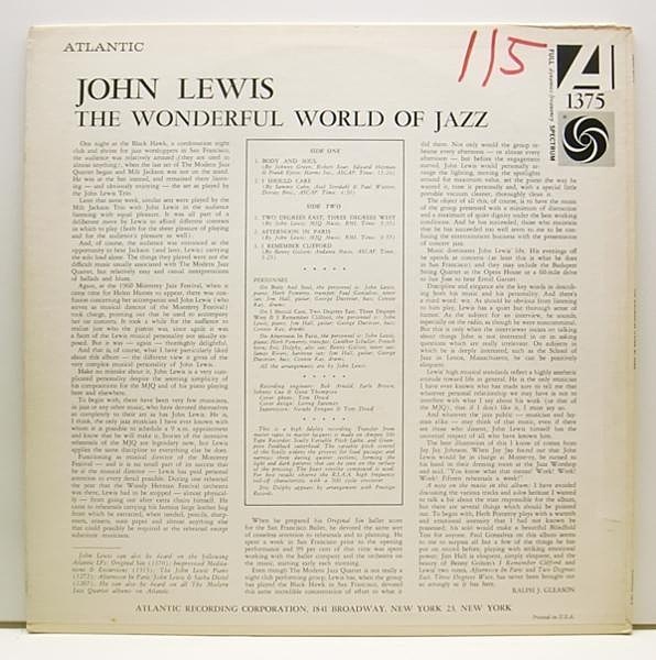 MJQのリーダーでもある名ピアニストJOHN LEWISの'61年カルテット/セクステット作品。