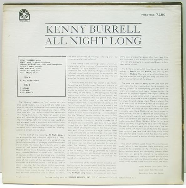 KENNY BURRELL(g) DONALD BYRD(tp) HANK MOBLEY(ts) JEROME RICHARDSON(ts/fl) MAL WALDRON(p) DOUG WATKINS(b) ARTHUR TAYLOR(ds)
