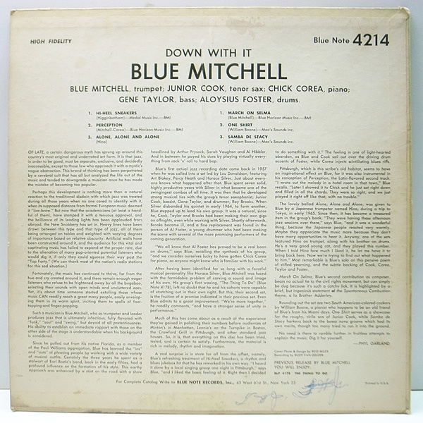Blue Mitchell(tp) Junior Cook(ts) Chick Corea(p) Gene Taylor(b) Aloysius Foster(ds)