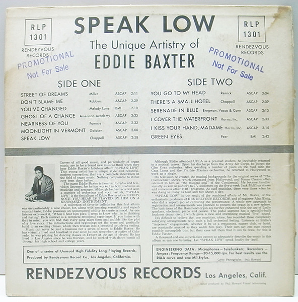 西海岸の小レーベル「Rendezvous」から発表した、鍵盤奏者エディ・バクスターによるスタンダード中心のラウンジーなインストもの。