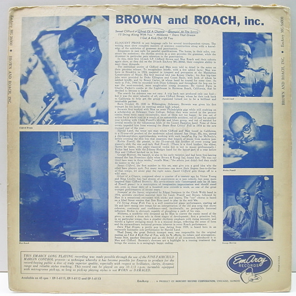 クリフォード・ブラウンの事故死前、わずか2年余りの活動で名演を残したマックス・ローチとのクインテット=双頭コンボによるハードバップの快演が収められた名盤です。CLIFFORD BROWN(tp) HAROLD LAND(ts) RITCHIE POWEL(p) GEORGE MORROW(b) MAX ROACH(ds)