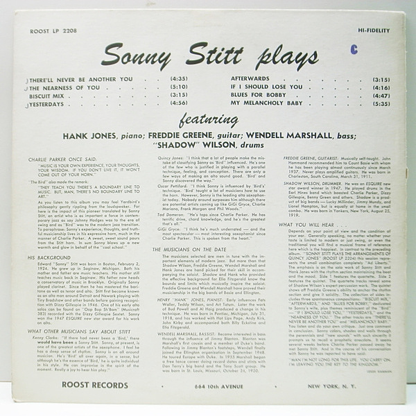 Sonny Stitt(sax) Hank Jones(p) Freddie Green(g) Wendell Marshall(b) "Shadow" Wilson(ds)