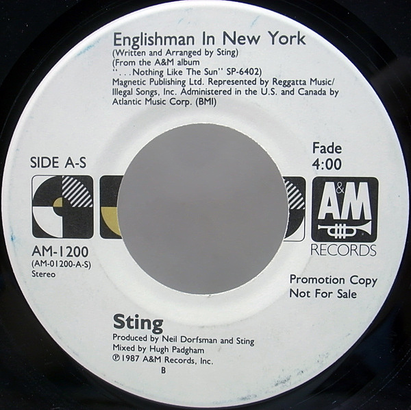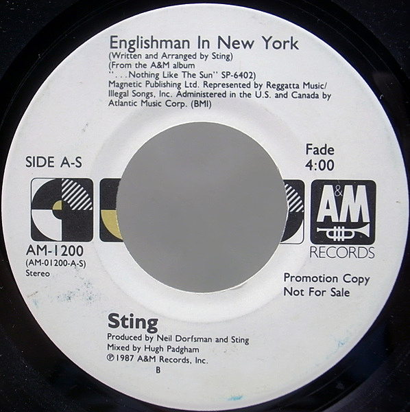 ニューヨークに暮らすイギリス人の心を描いたスティングを代表する人気曲 "ENGLISHMAN IN NEW YORK" のプロモ・シングル!両面セイム・タイトルのレアなプロモ仕様です。