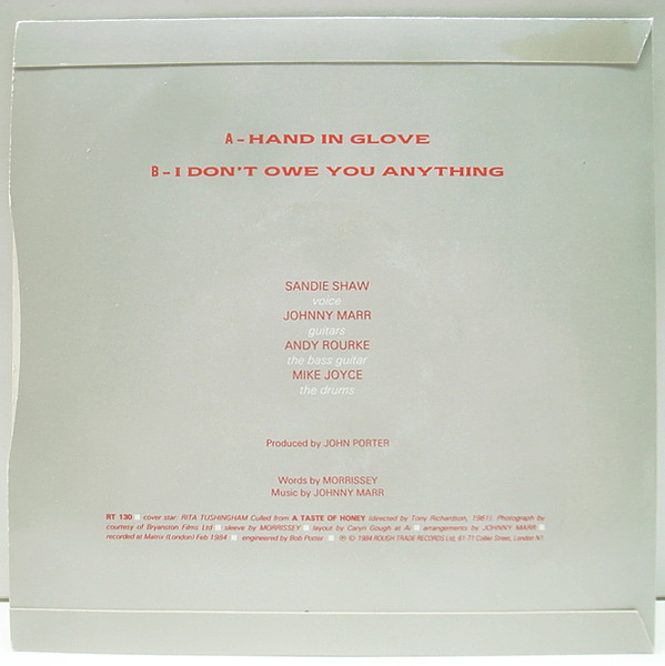 ザ・スミスのメンバー(モリッシー抜き)によるで彼らのデビュー曲 "Hand In Glove" のカヴァーと、甘酸っぱいグッド・メロウ "I Don't Owe You Anything" をカップリングしたインディ・ロック名門からの'84年シングル!