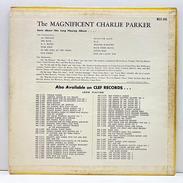 Charlie Parker(as) Miles Davis, Red Rodney(tp) Hal McKusick(cl) John Lewis, Walter Bishop(p) Charlie Mingus, Ray Brown, Teddy Kotick(b) Kenny Clarke, Max Roach, Roy Haynes(ds) etc / David Stone Martin(cover)