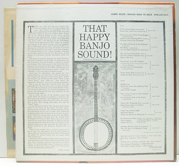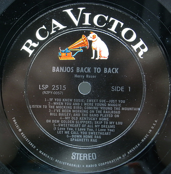 初回ニッパー 白文字 深溝 USオリジナル HARRY RESER Banjos Back To Back ('62 RCA) RAGTIME オールドタイミー/ハッピー・スウィング