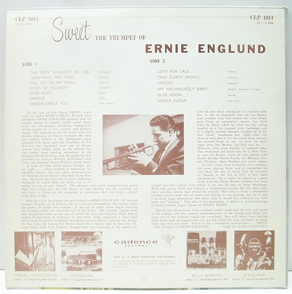 シカゴに生まれ、その後スウェーデンに移住したスウェディッシュ・トランペッター、アーニー・イングランドによる'56年作品。