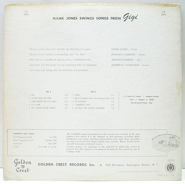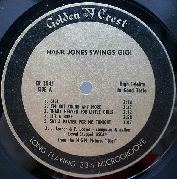 Pat O'DayやBetty Blakeらのレア盤でも知られるNYの小レーベル「Golden Crest」に残したハンク・ジョーンズの非常に珍しい一枚。