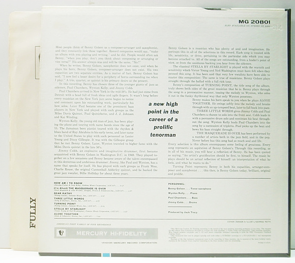 Benny Golson(ts) Wynton Kelly(p) Paul Chambers(b) Jimmy Cobb(ds)
