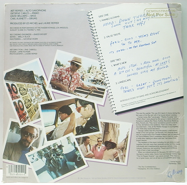 Art Pepper(as) George Cables(p) David Williams(b) Carl Burnett(ds)