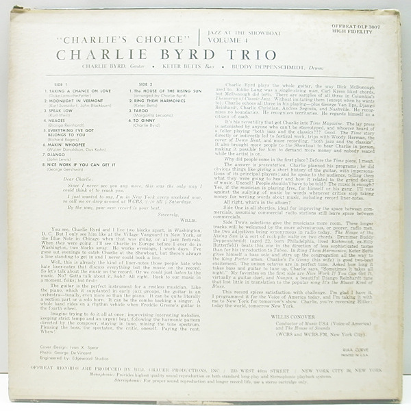 アコースティック・ギターでジャズを奏でる名手=チャーリー・バードが小レーベル「Offbeat」に残したギター・トリオもの。
