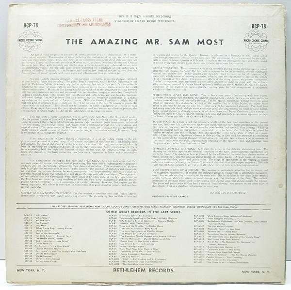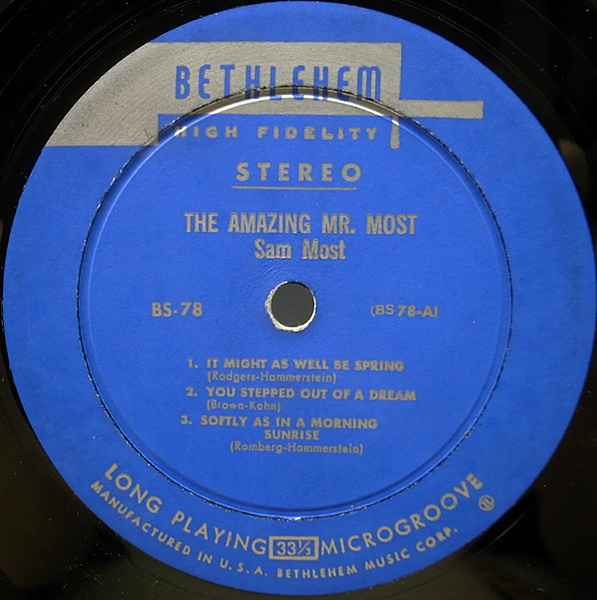 ハービー・マンと並ぶベツレヘムの名フルーティスト/クラリネット奏者、サム・モストの'57年録音。