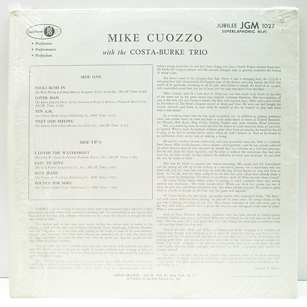 Mike Cuozzo(ts) Eddie Costa(p) Vinnie Burke(b) Nick Stabulas(ds)