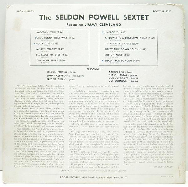 玄人好みのダンディなテナーマン、セルダン・パウエルがRoostに残した数少ない2枚のリーダー・アルバムの一つ。