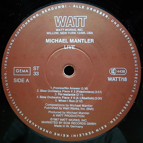 コンテンポラリージャズ・レーベル『WATT』の主宰でもあるトランぺッター/コンポーザー、マイケル・マントラーの'87年ライヴ盤。