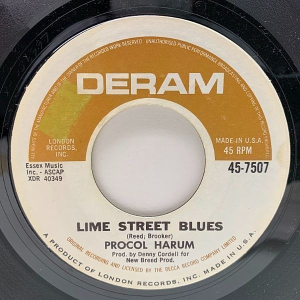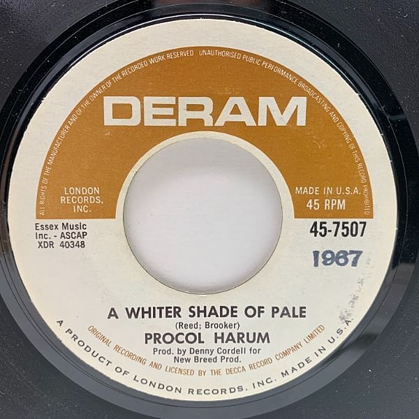 プロコル・ハルムのデビュー・シングルにしてロック史に残る感動の名バラード "青い影/A Whiter Shade Of Pale" 収録7インチ。