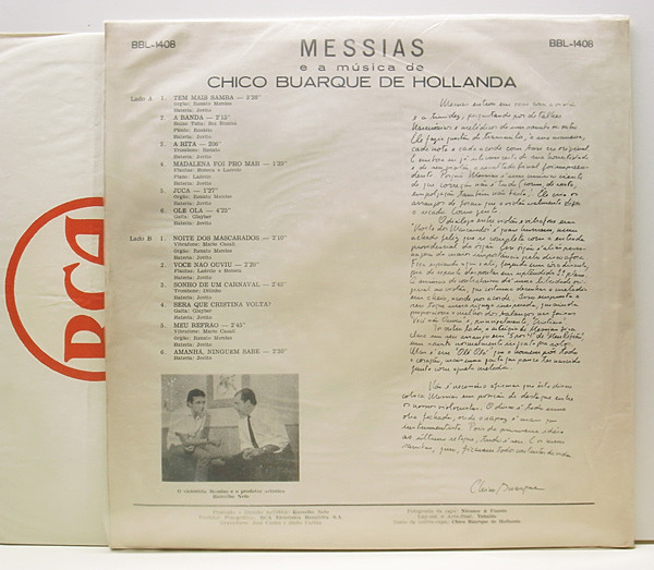 ブラジルの名ソングライターで知られるシコ・ブアルキをコンポーザーに迎えたメシアスなるギタリストによる数少ない非常に珍しい'67年アルバムです。