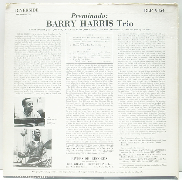 BARRY HARRIS(p) JOE BENJAMIN(b) ELVIN JONES(ds)
