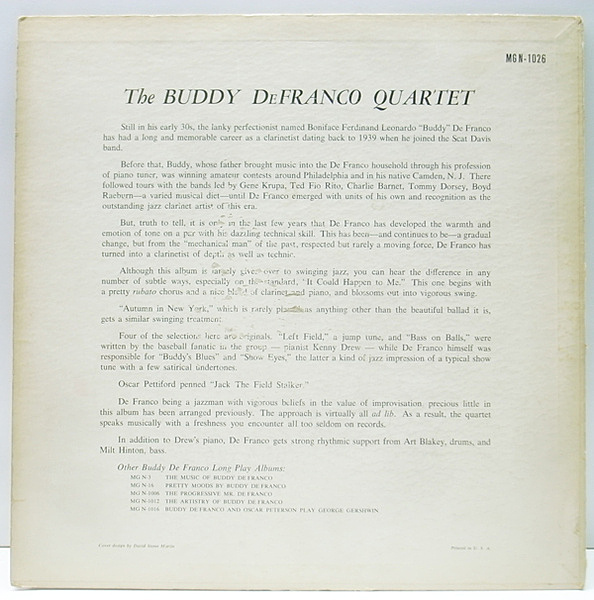 *後にNorgranではMG N-1069、VerveではMG V-8159で「Mr. Clarinet」としてジャケが差し替えられ、内容もB-4Jack The Field Stalkerが削除され、FerdinandoとBut Not For Meが替わりに追加/曲順も変わって再発されます。DSMジャケットでリリースされたコチラの初回プレスは滅多に出てきません!