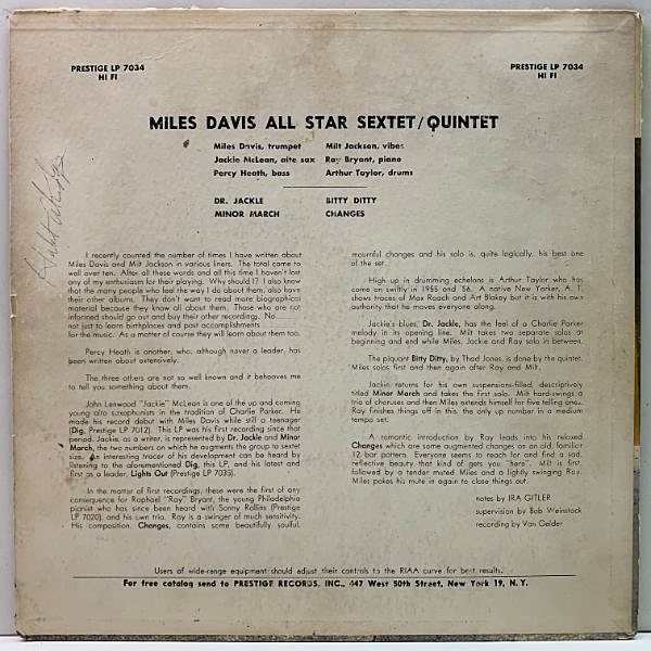 レイ・ブライアント、パーシー・ヒース、アート・テイラーらとのクインテット。ジャッキー・マクリーンを加えた2管編成のセクステットでの好演を収録。Miles Davis(tp) Milt Jackson(vib) Jackie McLean(as) Ray Bryant(p) Percy Heath(b) Arthur Taylor(ds)