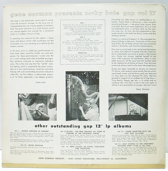 赤盤 FLAT 深溝 MONO オリジナル CORKY HALE Modern Harp ('56 GNP) Larry Bunker, Howard Roberts, Red Mitchell etc