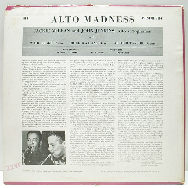 Jackie McLean, John Jenkins(as) Wade Legge(p) Doug Watkins(b) Arthur Taylor(ds)