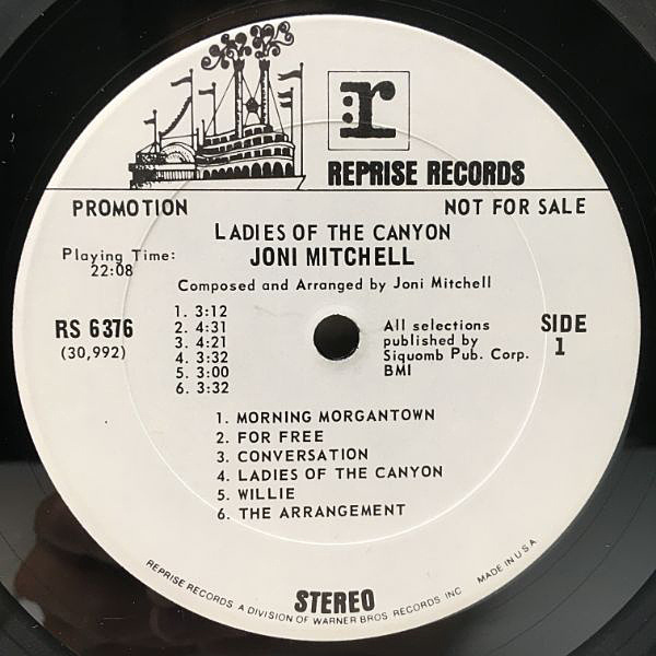 ラベル・デザイン移行期ですのでジョニのアルバムの中でもコレの初回プレスを探すのが通常盤でも一番大変ですが、今回は特にこのタイトルでは滅多に見かけないプロモ仕様です。マトは手書きで末尾は両面1Aです。