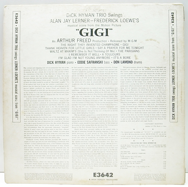 クラシック・ピアノを学んだ後にテディ・ウィルソンのもとでジャズ・ピアノを習得したディック・ハイマンが、アラン・ジェイ・ラーナーとフレデリック・ロウによるミュージカル・スコア『Gigi』を題材にしたモダンなピアノトリオ作品。