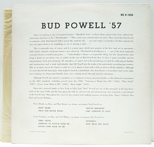Bud Powell(p) Lloyd Trotman, Percy Heath(b) Art Blakey, Max Roach(ds)