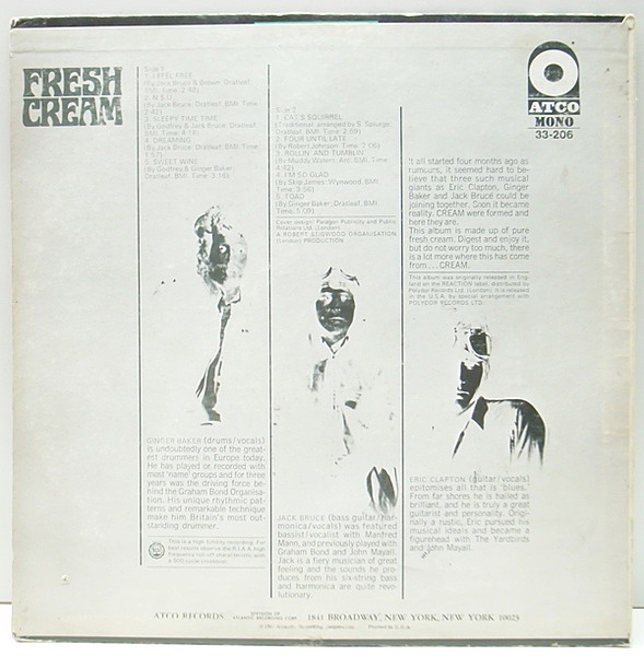 英国を代表するスーパー・ロック・グループ『CREAM』の1stアルバム。