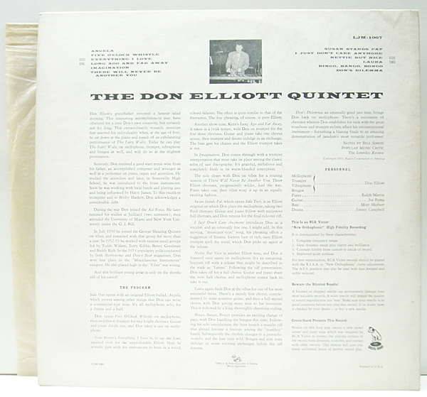 メロフォン/トランペット/ヴァイヴ/ボンゴ等を巧みに操る多才なマルチ奏者ドン・エリオット率いるクインテット編成での'54年作品。